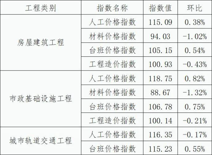 现发布我省房屋建筑工程、市政基础设施工程和城市轨道交通工程2025年1月人工价格指数和台班价格指数;以及房屋建筑工程和市政基础设施工程材料价格指数和工程造价指数如下: