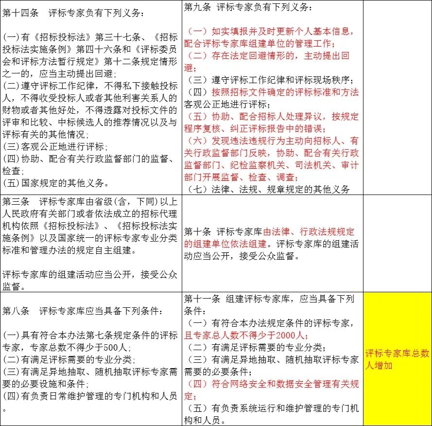 明确评标专家库由法律、行政法规规定的组建单位依法组建,提高组建评标专家库的基本条件,对专家总人数和网络安全、数据安全管理等提出明确要求。