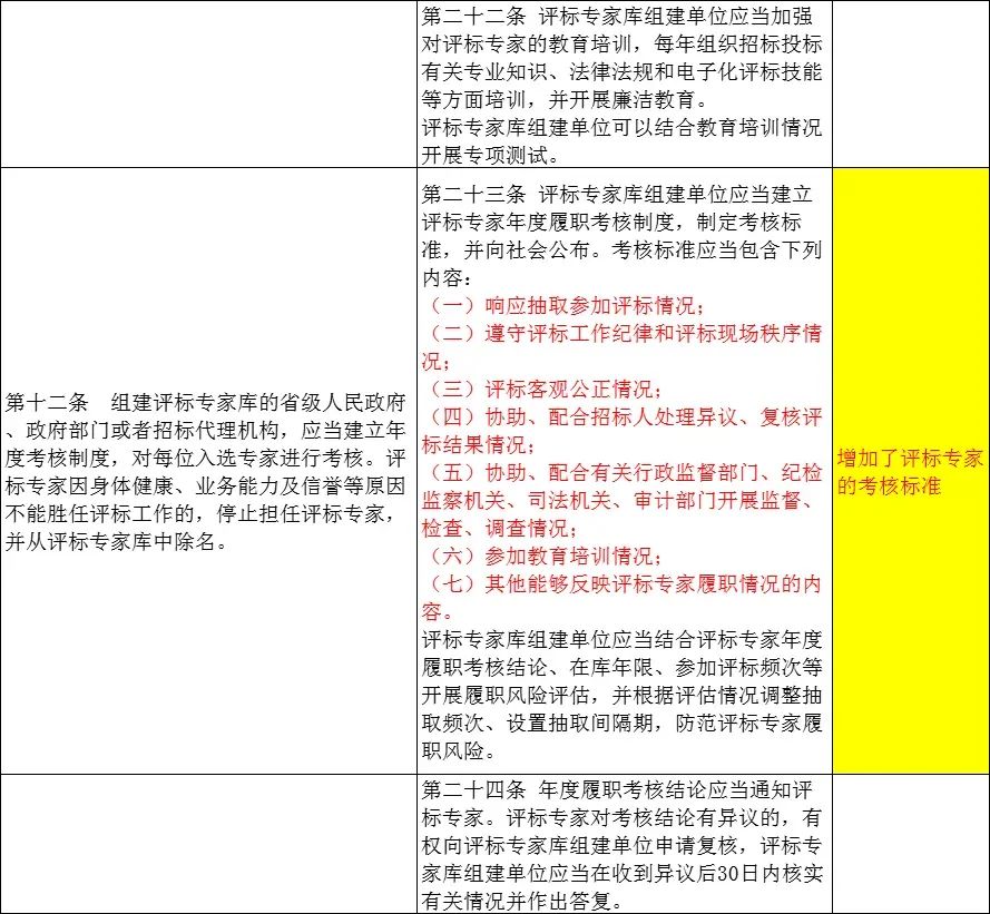 明确评标专家库组建单位对评标专家的日常管理责任,逐项细化完善评标专家档案记录、教育培训、履职考核、动态调整等管理要求。增加履职风险评估的规定,通过调整抽取频次、设置抽取间隔期等方式,降低评标专家履职风险。